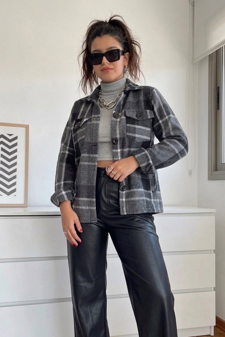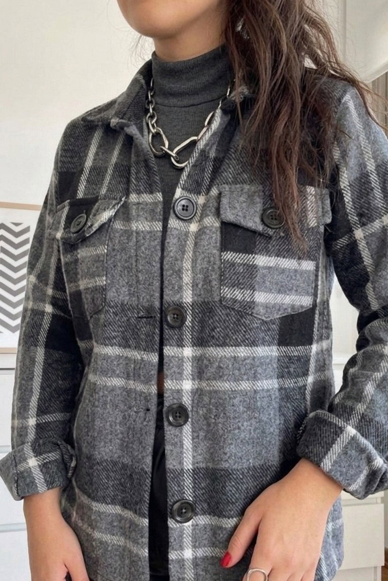Un clásico reinventado para acompañarte en cada look. Confeccionado en paño cuadrillé premium, este camisaco oversize es perfecto para sumar calidez sin perder estilo.