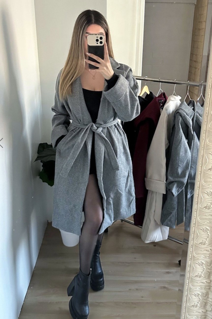 Su diseño clásico con lazo en la cintura realza tu silueta, mientras que los bolsillos funcionales lo convierten en una prenda tan práctica como sofisticada.