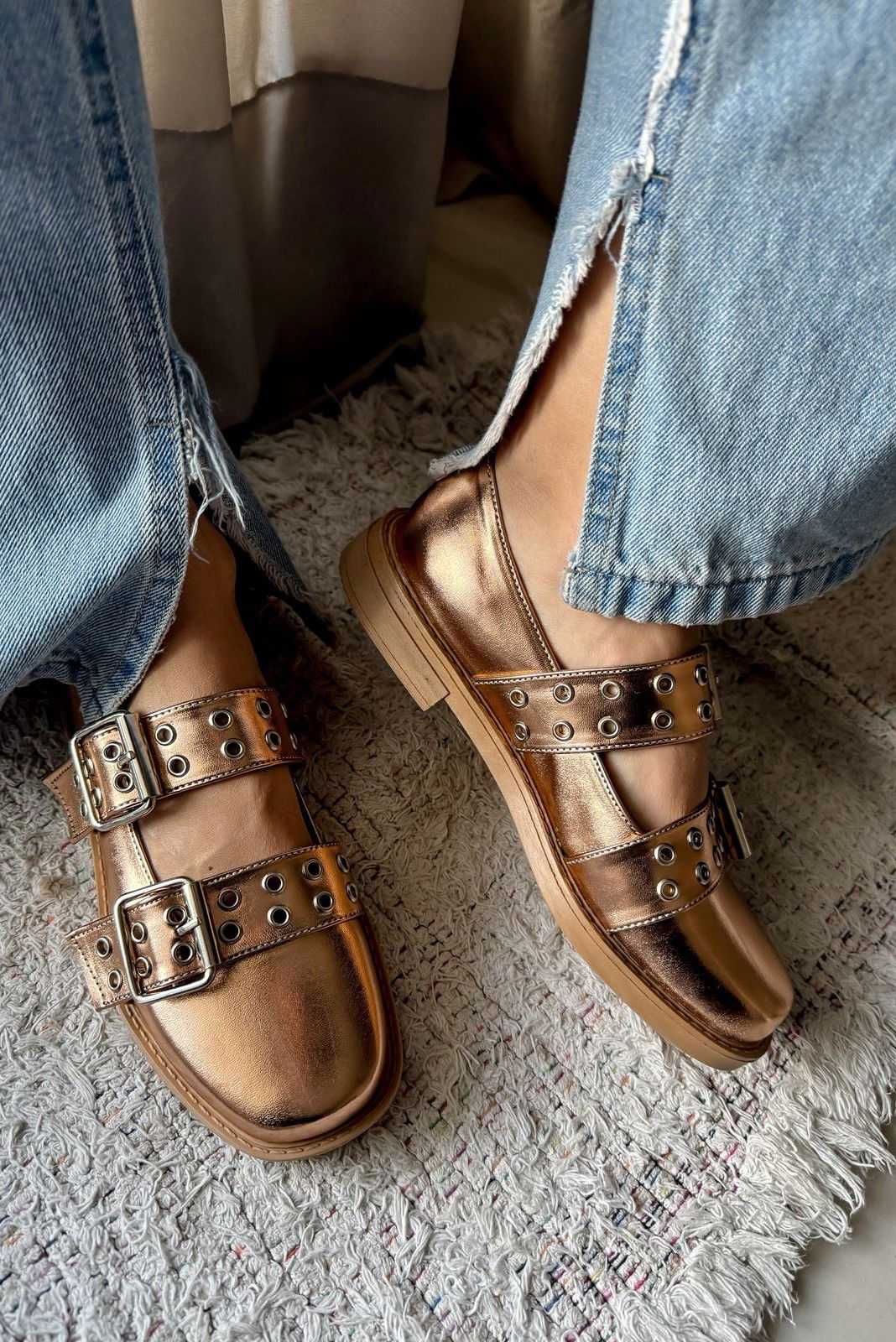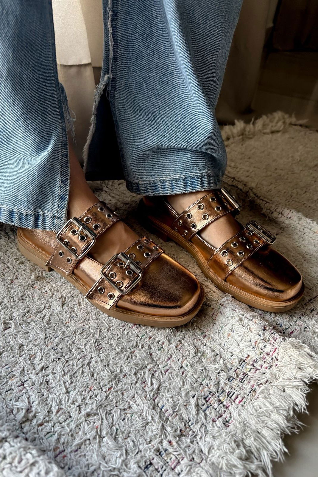 Cerramiento: sin cierre; cuentan con dos cintos regulables con hebillas en la capellada y arandelas metálicas que aseguran firmeza y un toque canchero.