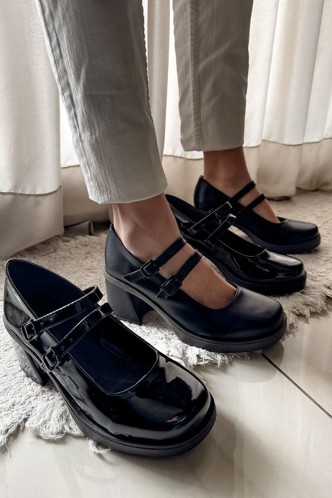 Negro Charol: con acabado brillante, ideal para un look más atrevido.