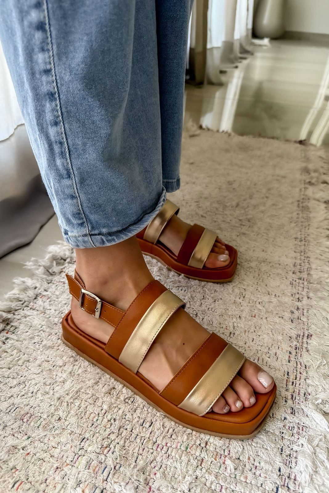 La ART 250 es la sandalia que une comodidad, diseño y modernidad en un solo modelo. Confeccionada en ecocuero de alta calidad, se distingue por sus tiras anchas combinadas con cortes en tono peltre metalizado, que aportan un detalle elegante y actual a cualquier look.