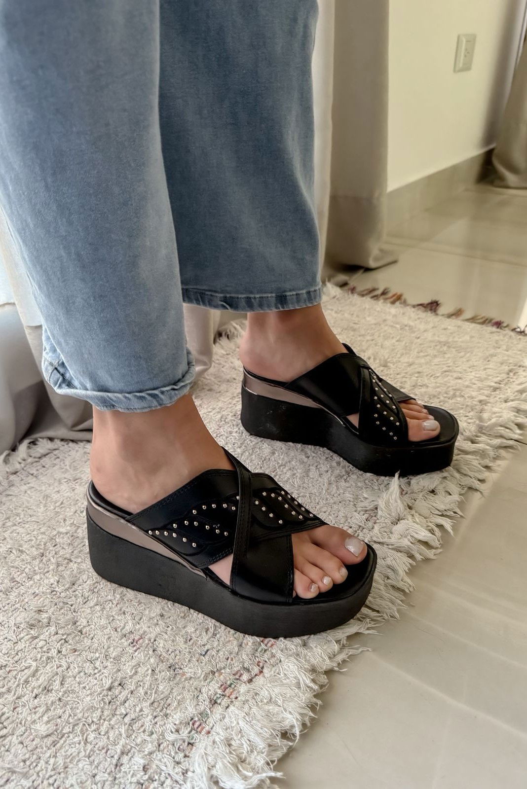 Los ART 402 son el calzado perfecto para sumar altura y estilo sin perder comodidad. Diseñados en ecocuero con capellada cruzada y detalle de tachas metálicas, tienen esa estética urbana que transforma un look simple en uno con mucha actitud.