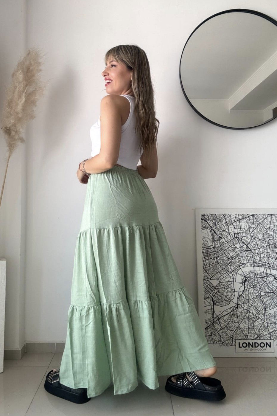 Pollera Lino Verde Claro