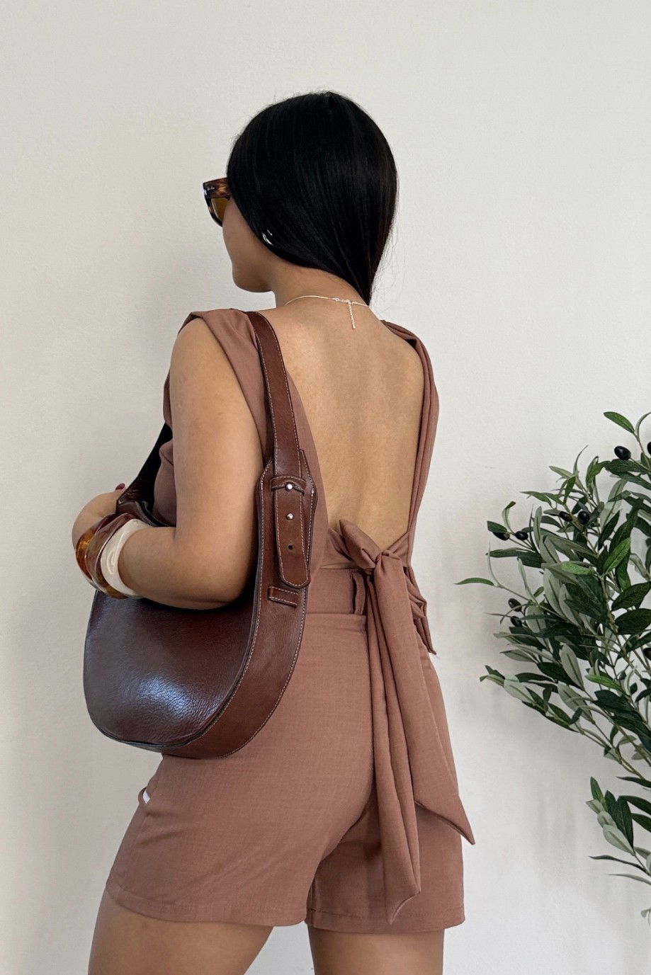 - Top con escote cerrado al frente y espalda descubierta con lazo regulable.