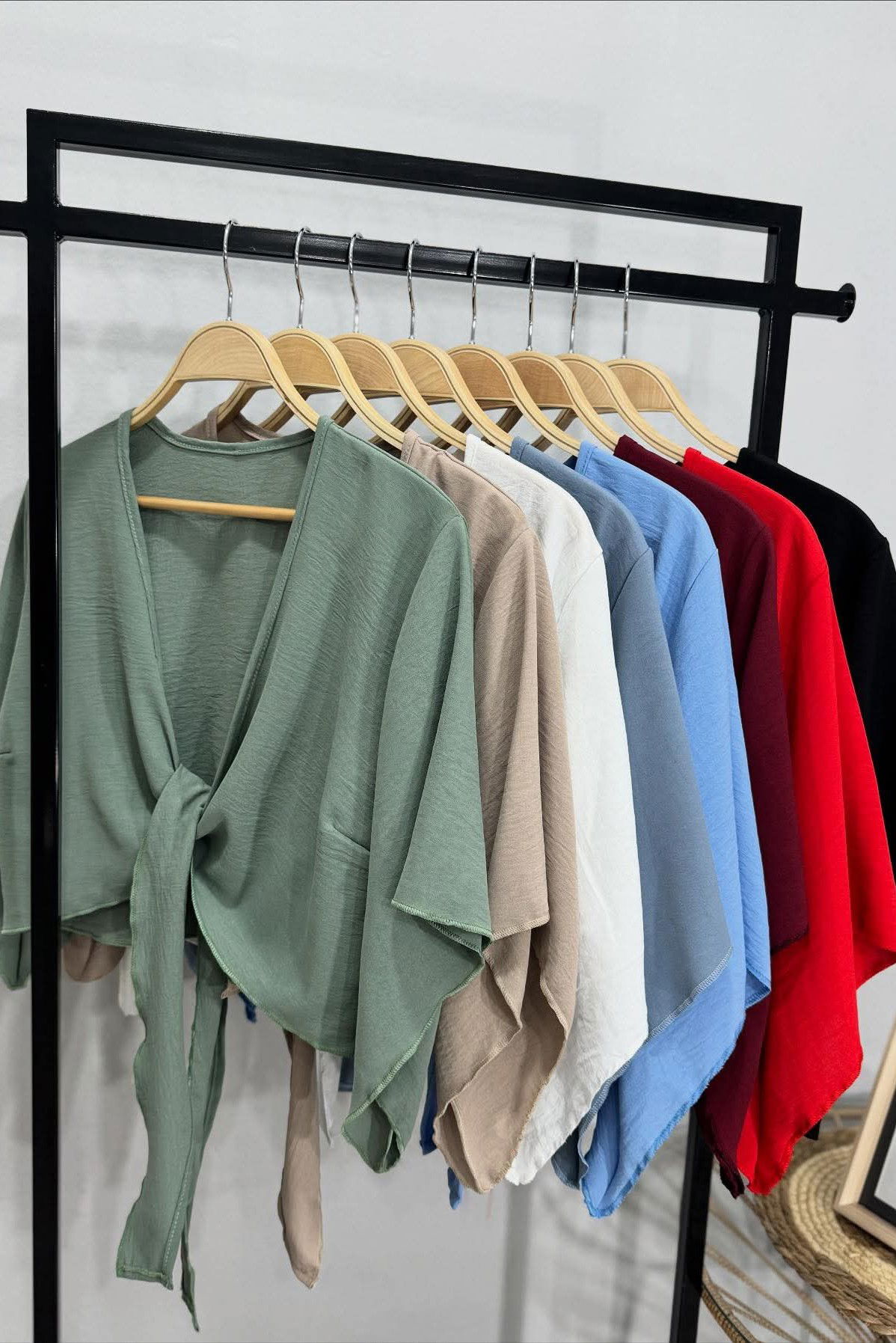 Confeccionada en gasa tipo Cey, una tela liviana, fresca y con una caída suave que realza la figura sin marcar. Su diseño con lazo delantero y mangas amplias crea un equilibrio perfecto entre comodidad y elegancia.