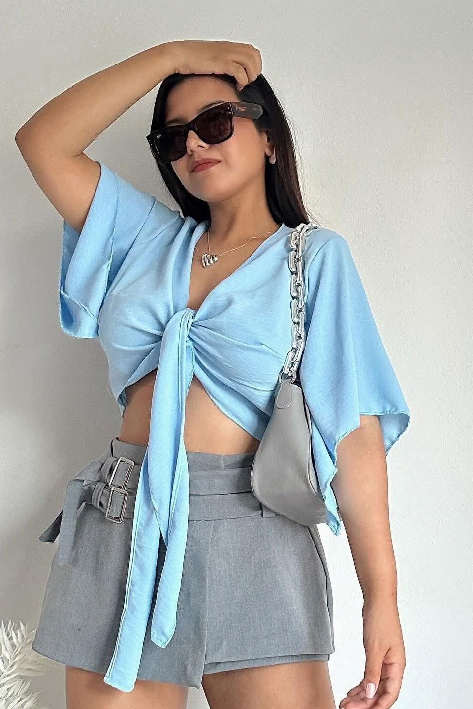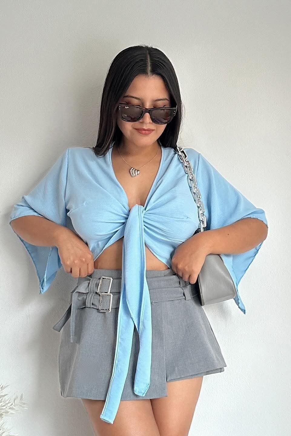 Confeccionada en gasa tipo Cey, una tela liviana, fresca y con una caída suave que realza la figura sin marcar. Su diseño con lazo delantero y mangas amplias crea un equilibrio perfecto entre comodidad y elegancia.
