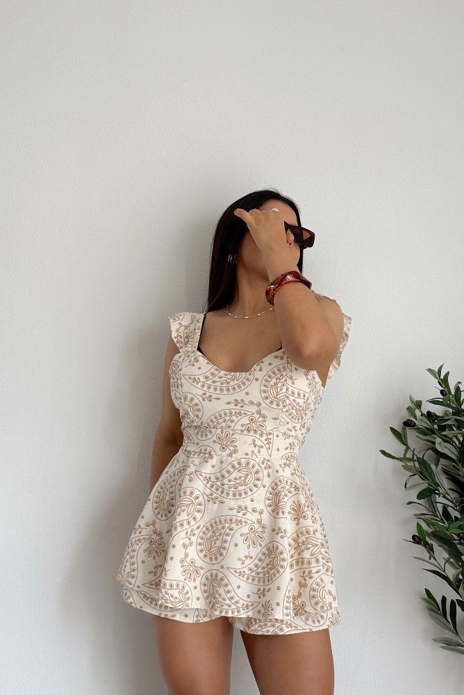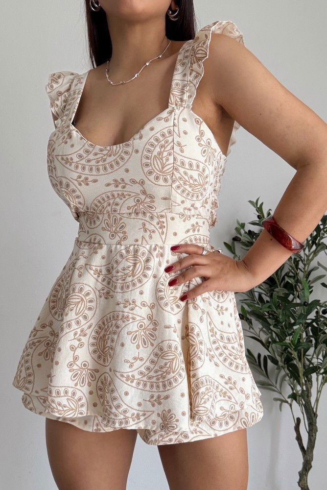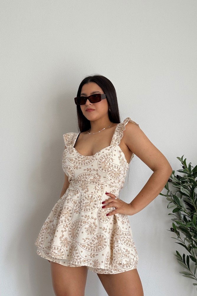 Diseño: mono corto con volados en los hombros y espalda ajustable.