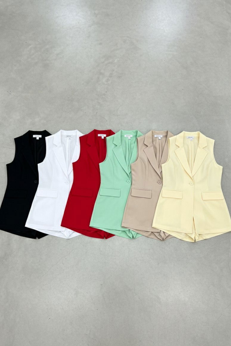 El Conjunto Shaina está compuesto por un chaleco largo sastrero y un short al tono, pensados para lograr un look fresco, moderno y súper estilizado.