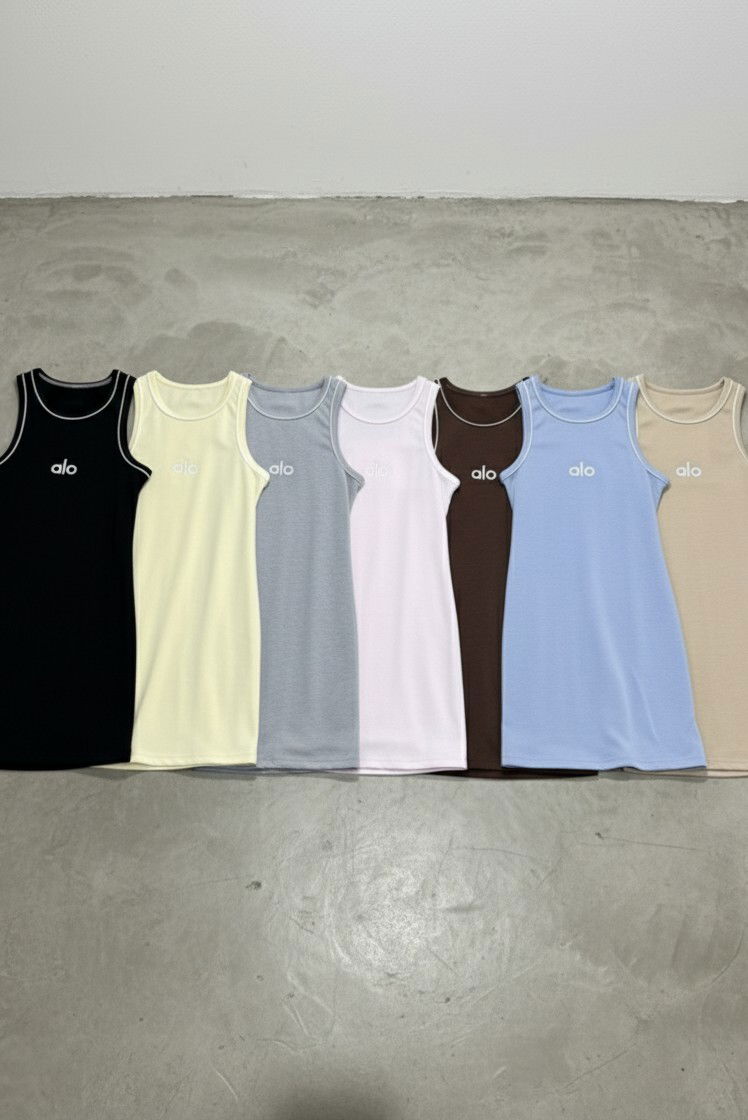 Su diseño tipo musculosa deportiva, con bordado frontal alo y terminaciones contrastadas, le da ese toque urbano y fresco ideal para usar todos los días —desde una salida casual hasta un look más arreglado con accesorios.