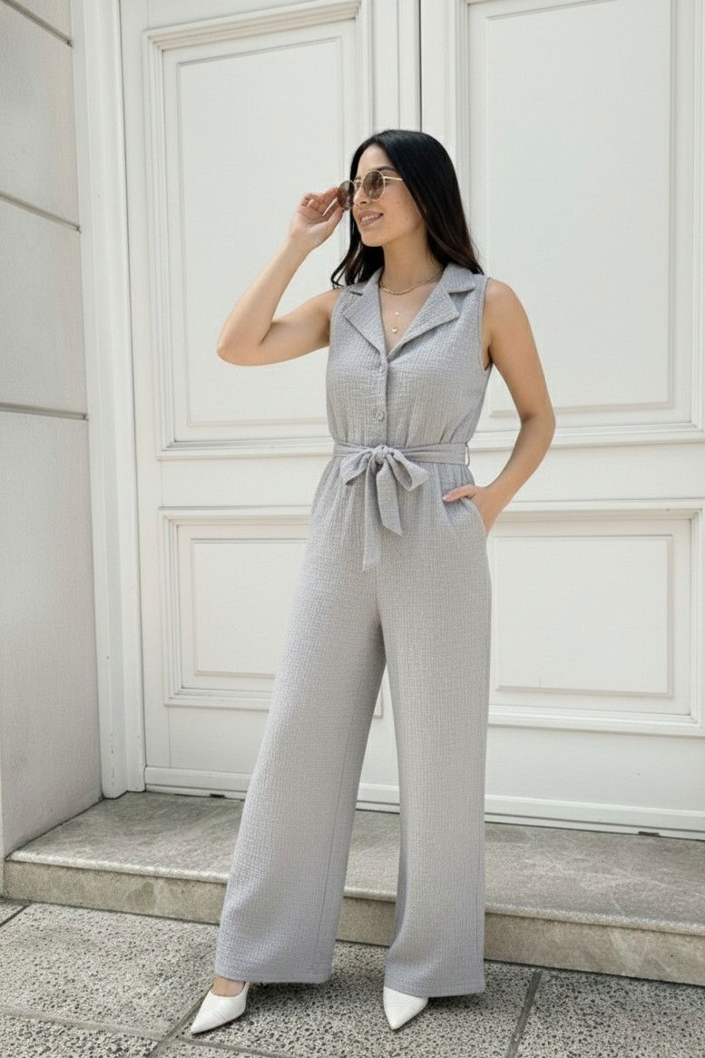 Un mono súper versátil que podés usar para el día a día o para un look más arreglado. Favorece todos los cuerpos gracias a su caída relajada y su cintura ajustable.