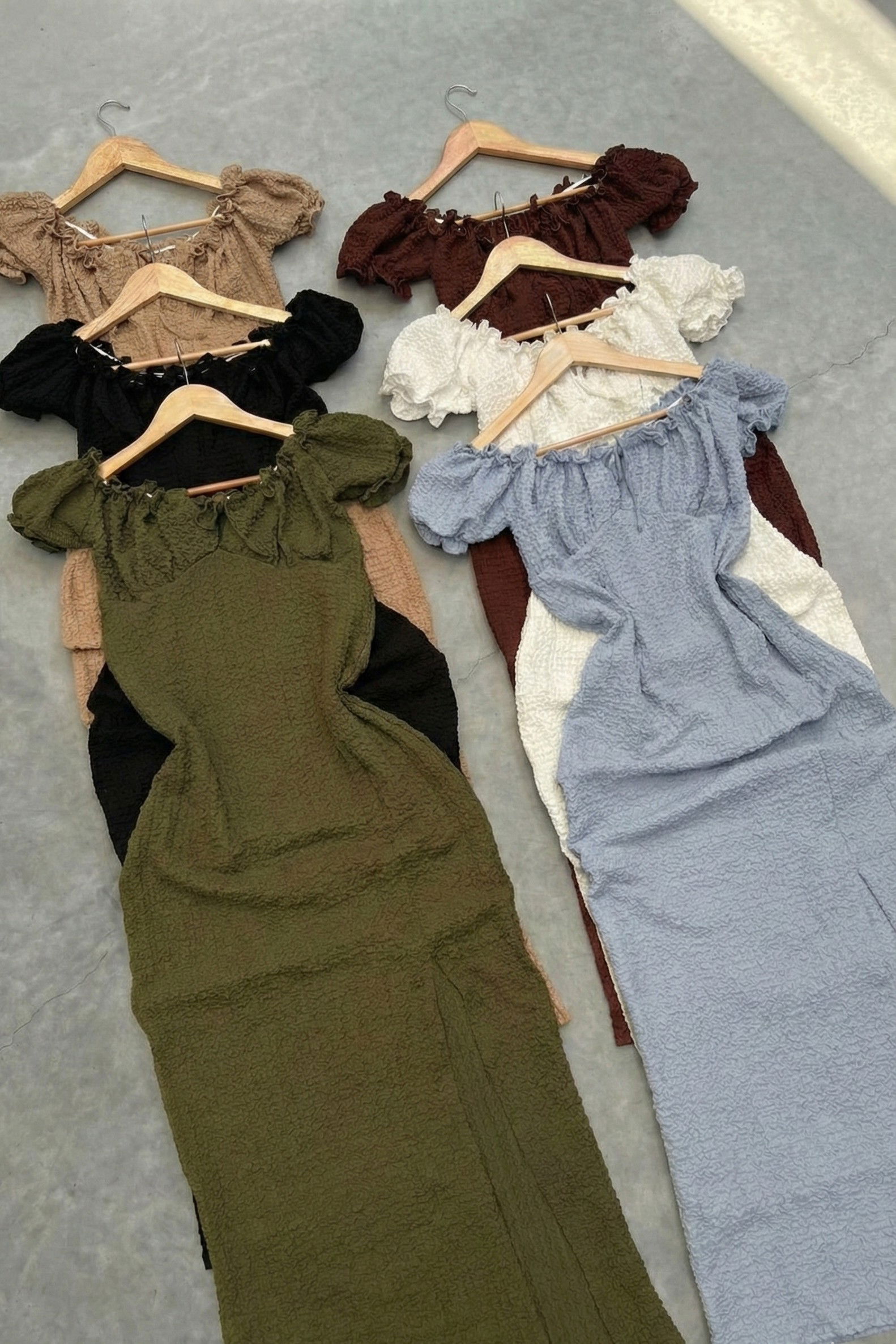 El Vestido Kala Largo es ese diseño que combina elegancia, frescura y comodidad en una sola prenda. Confeccionado en Hawai Brusella, una tela liviana, con textura y caída perfecta, ideal para looks de día o noche.