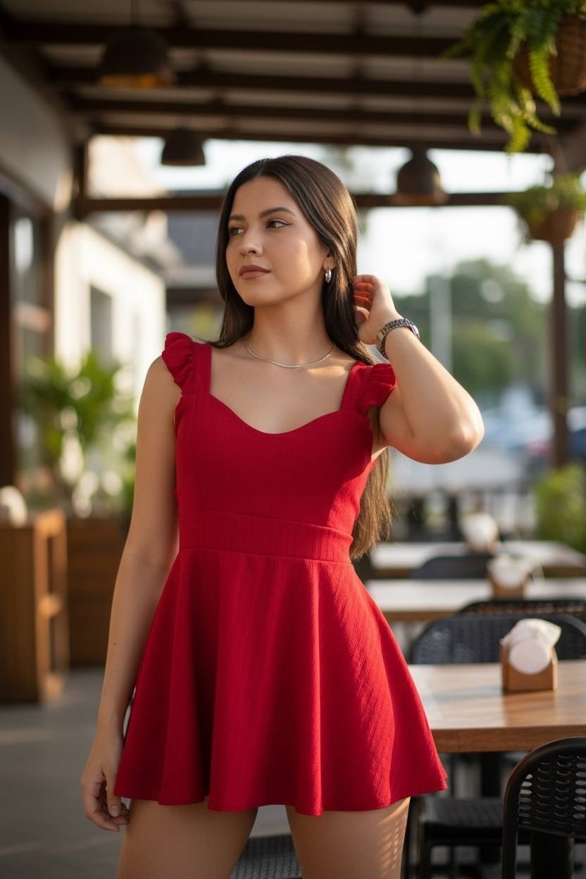 El Mono Vestido Elina es la prenda ideal para lucir femenina y cómoda al mismo tiempo. Tiene efecto vestido gracias a su falda en corte evasé y debajo short integrado, para mayor seguridad y libertad de movimiento. Una opción súper versátil para día o noche ✨