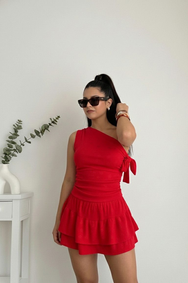 Remera de un hombro con detalle de lazo, que realza la figura y aporta un toque moderno.
