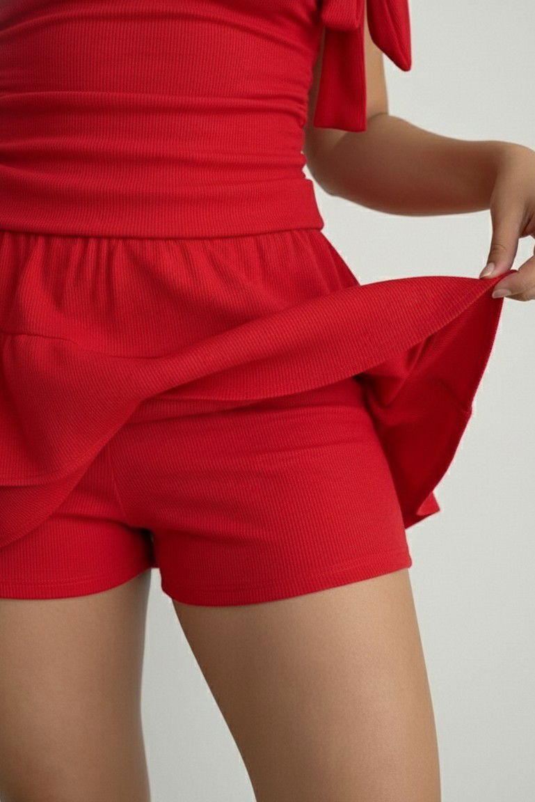 Pollera con volados y microshort interno, ideal para moverte con total seguridad y comodidad.