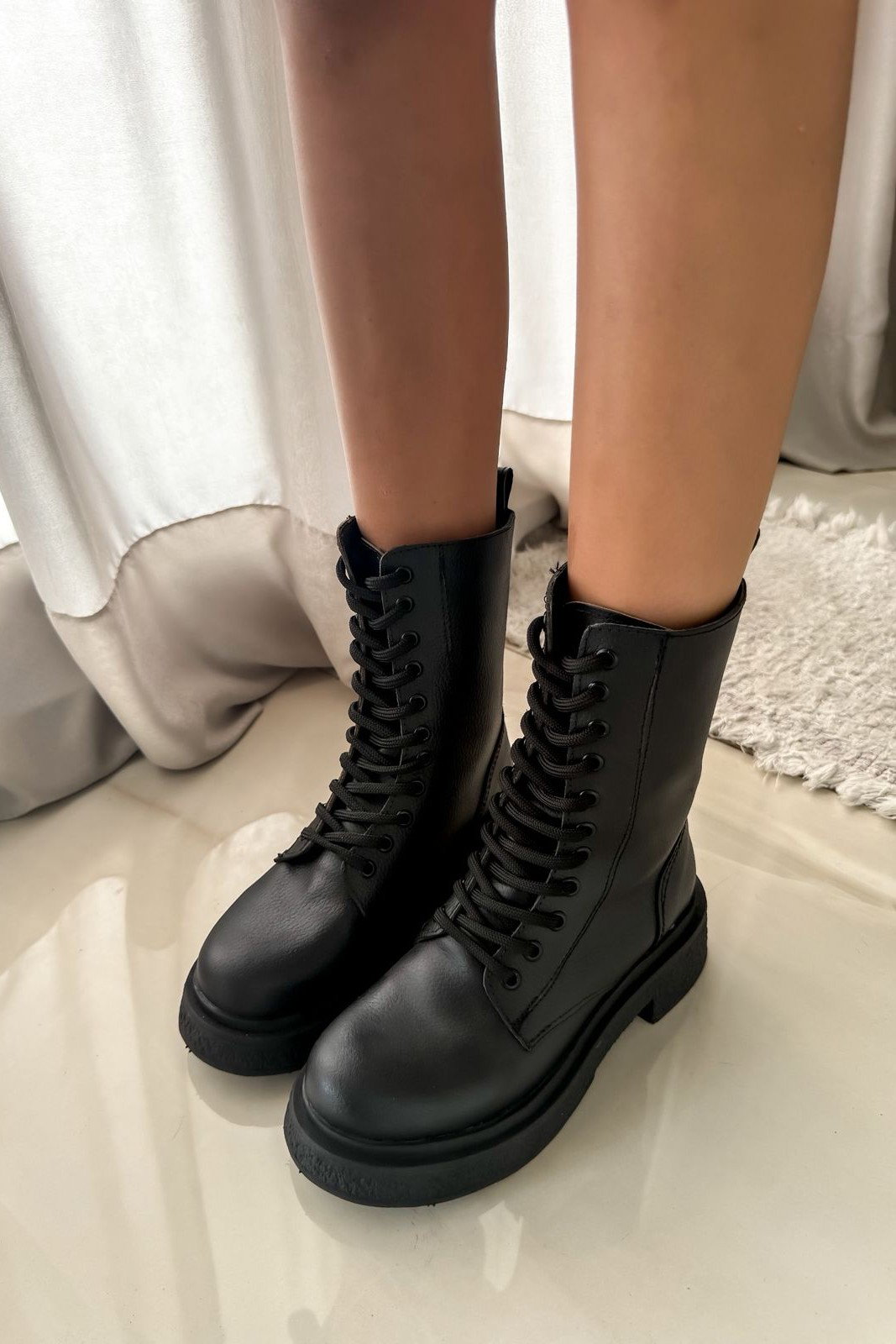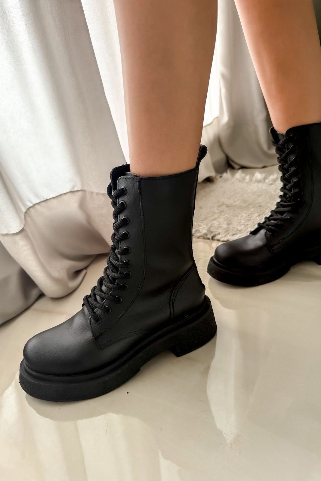 Borcego acordonado en cuero negro, de excelente terminación y calidad premium. Un modelo versátil, urbano y atemporal que combina con absolutamente TODO.