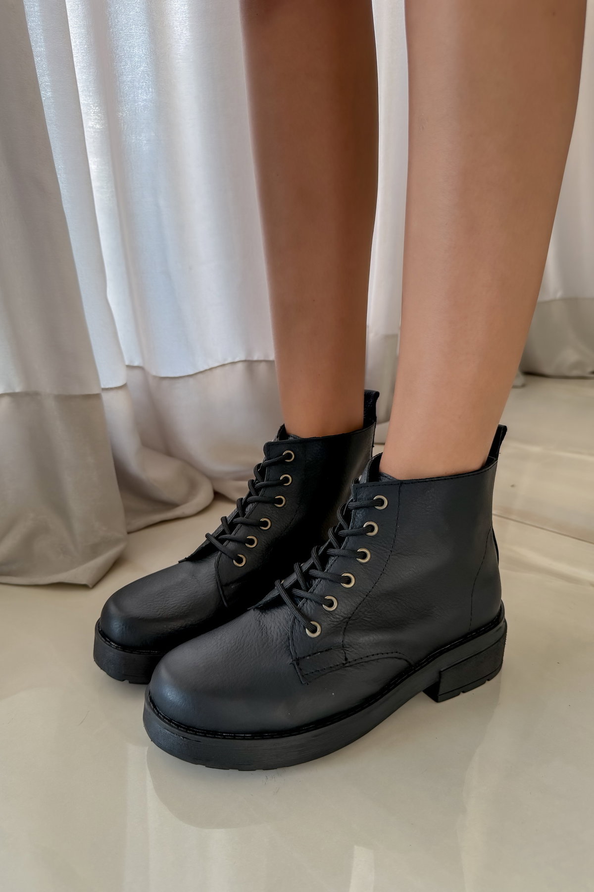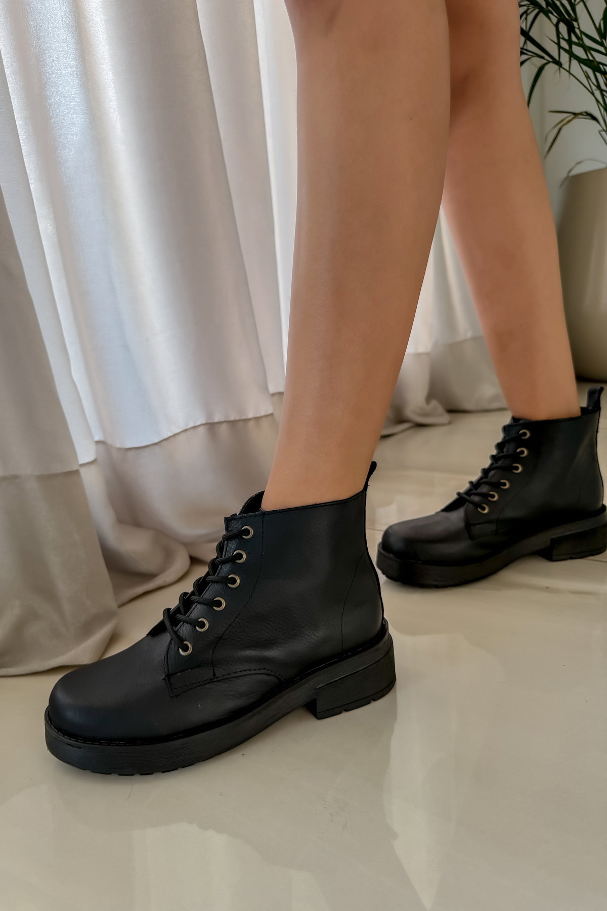 Borcego corto acordonado confeccionado en cuero, de excelente terminación y textura natural. Un modelo clásico y versátil que combina perfecto con looks urbanos, casuales o más arreglados.