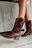Presenta punta levemente afinada, caña de 26 cm y un taco recto foleado que estiliza sin perder estabilidad. En el lateral interno cuenta con cierre a tono, lo que facilita el calce manteniendo el diseño limpio.