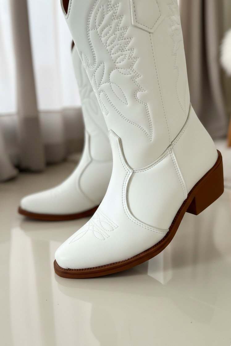 Texana media confeccionada en cuero sintético, con diseño clásico western y costuras decorativas marcadas en la caña y el empeine.