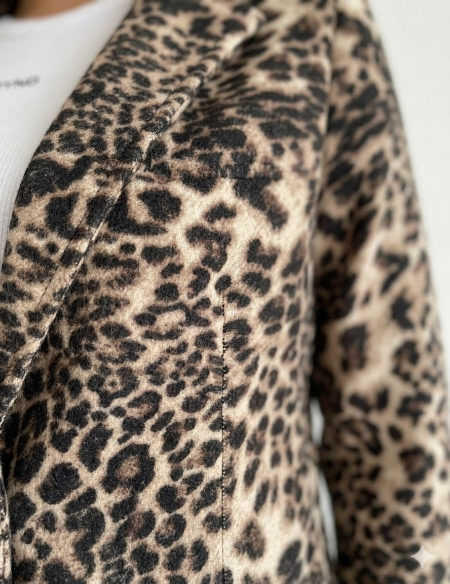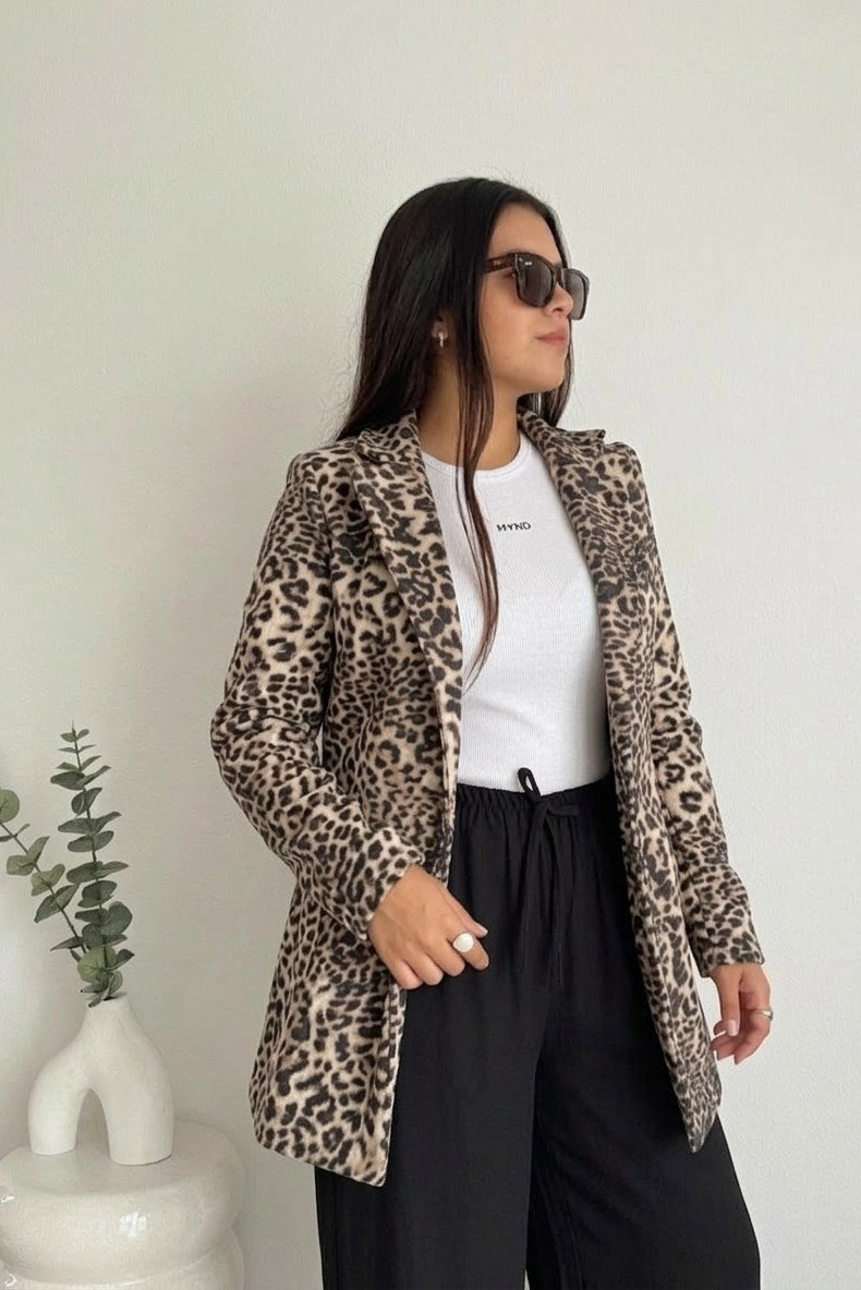 El Saco Paño Print es una prenda protagonista que eleva cualquier look de temporada. Su diseño con estampado animal print aporta personalidad y estilo, convirtiéndolo en una opción ideal para quienes buscan un abrigo moderno y llamativo.