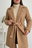 El diseño incluye cinturón con lazo que permite ajustarlo a la cintura y marcar la figura, junto con bolsillos laterales funcionales que suman practicidad. Su cuello amplio con solapa completa el look con un estilo moderno y relajado.