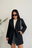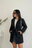 El diseño incluye cinturón con lazo que permite ajustarlo a la cintura y marcar la figura, junto con bolsillos laterales funcionales que suman practicidad. Su cuello amplio con solapa completa el look con un estilo moderno y relajado.
