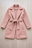 El diseño incluye cinturón con lazo que permite ajustarlo a la cintura y marcar la figura, junto con bolsillos laterales funcionales que suman practicidad. Su cuello amplio con solapa completa el look con un estilo moderno y relajado.